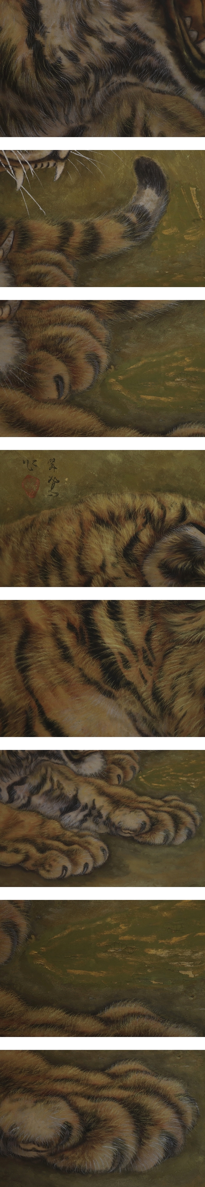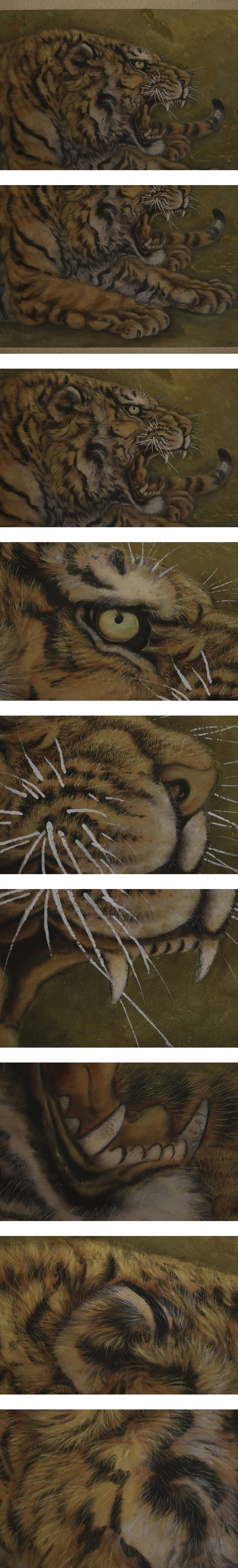 - 名品【真作】吉田翠鳳【大幅・猛虎】◆絹本◆共箱◆二重箱◆掛軸 t01146
