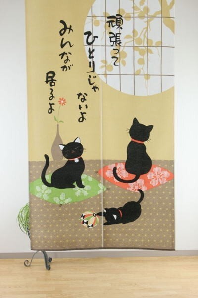 - 和風のれん 文字いり 「黒ねこ柄」ロング85センチ×150センチ10049-naru頑張って、ひとりじゃないよ。みんなが居るよ。