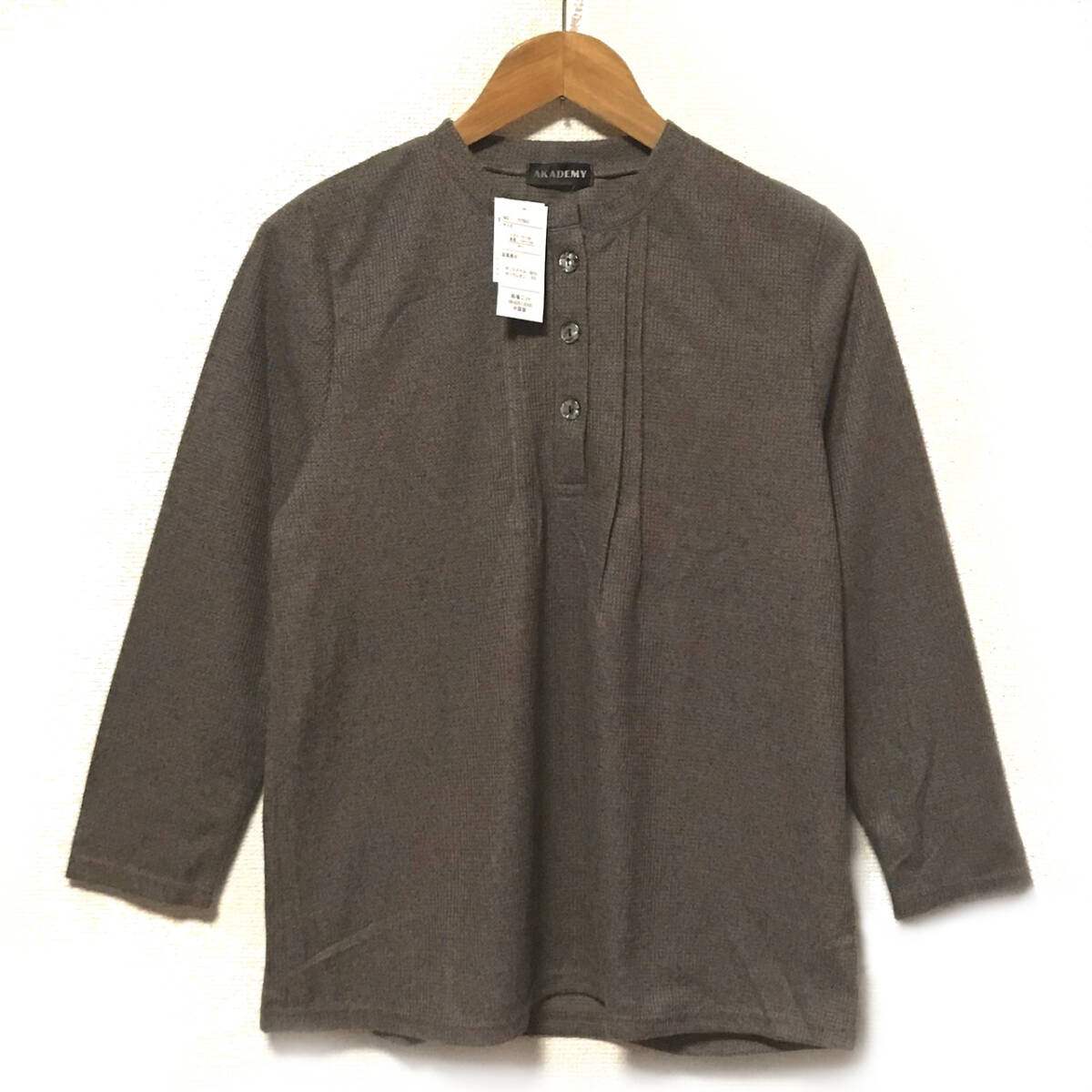 > ■新品■ 胸タック飾り 長袖 カットソー ブラウン 茶 M L サイズ 秋 春 ハーフボタン ミセス レディース トップス 大人カジュアル AK14
