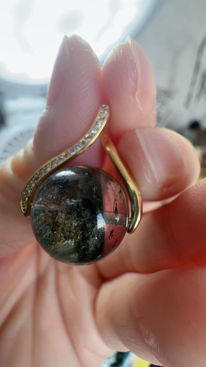 - R2M-047天然水晶 一品一図 一点物 ガデンクォーツ 健康 長寿 綺麗~ パワーストーン ペンダント14mm チェーンS925/約45cm