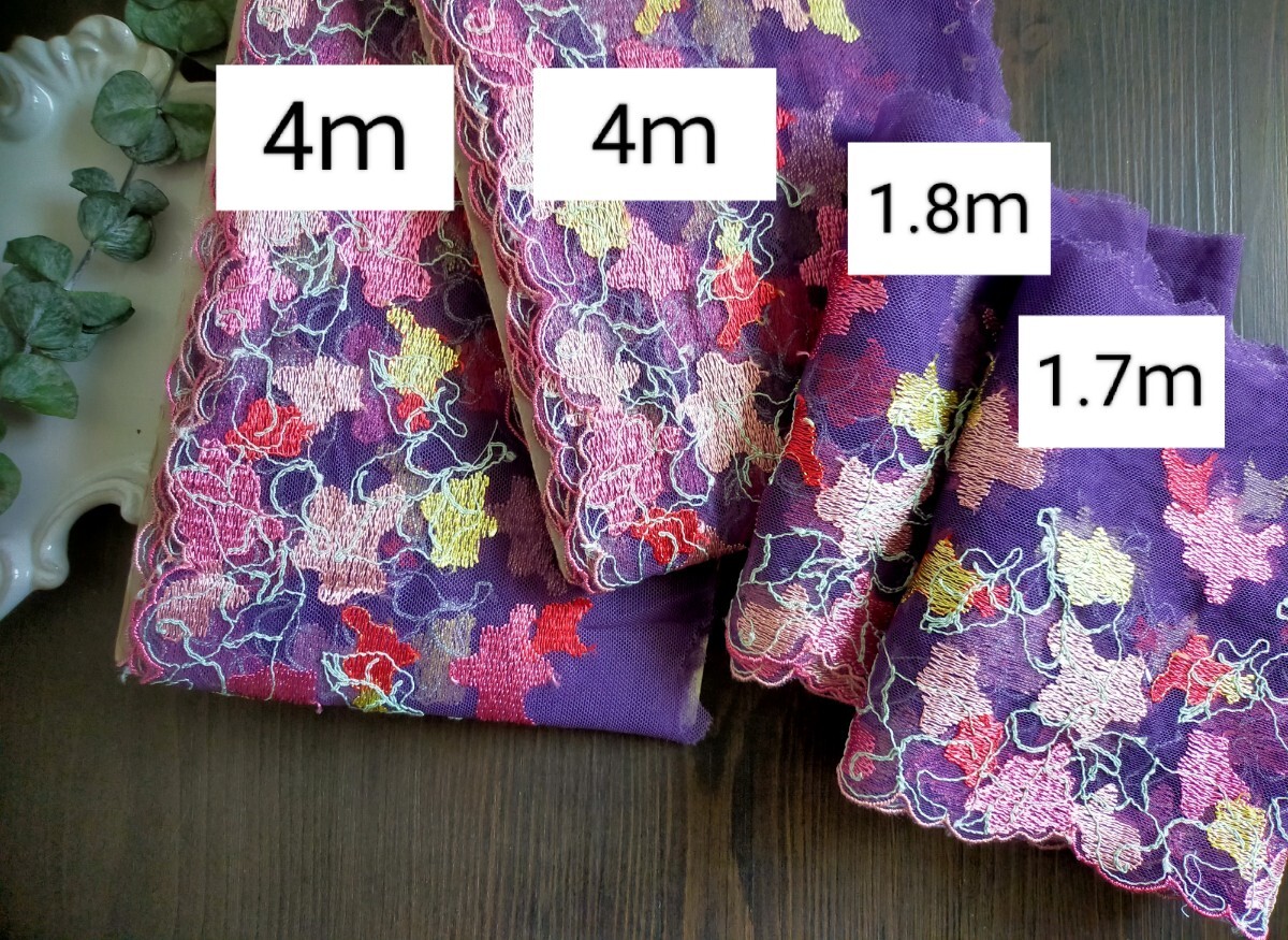 - A337最終赤字セール【計11.5m】まとめ反売り【巾15cm】フラワー柄葉っぱ柄リーフ柄チュールレースハンドメイド紫系レッドイエローピンク