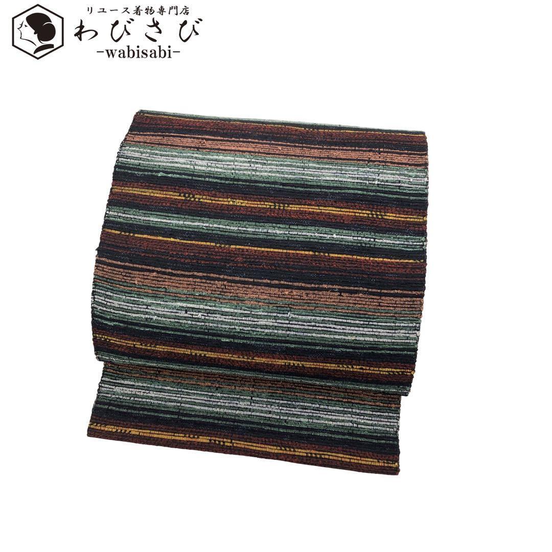 - 名古屋帯 裂織 雰囲気の良い色彩 横縞織模様 O-4643 着物 きもの kimono 和服 和装 中古 リサイクル着物 【送料無料】