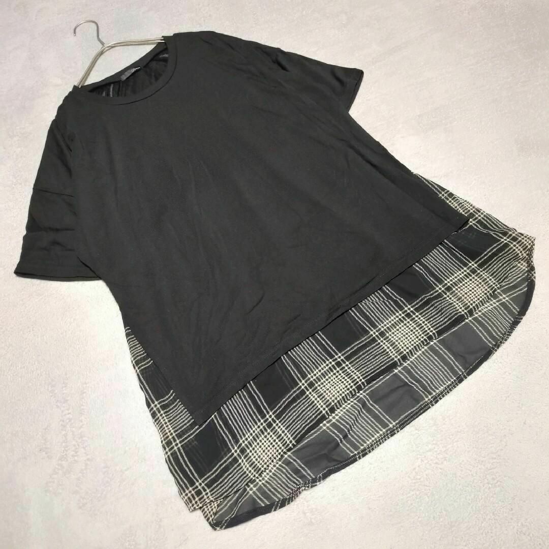 - 【Ranan】ラナン(L)チュニック 重ね着風 カットソー シャツ 薄手 トップス