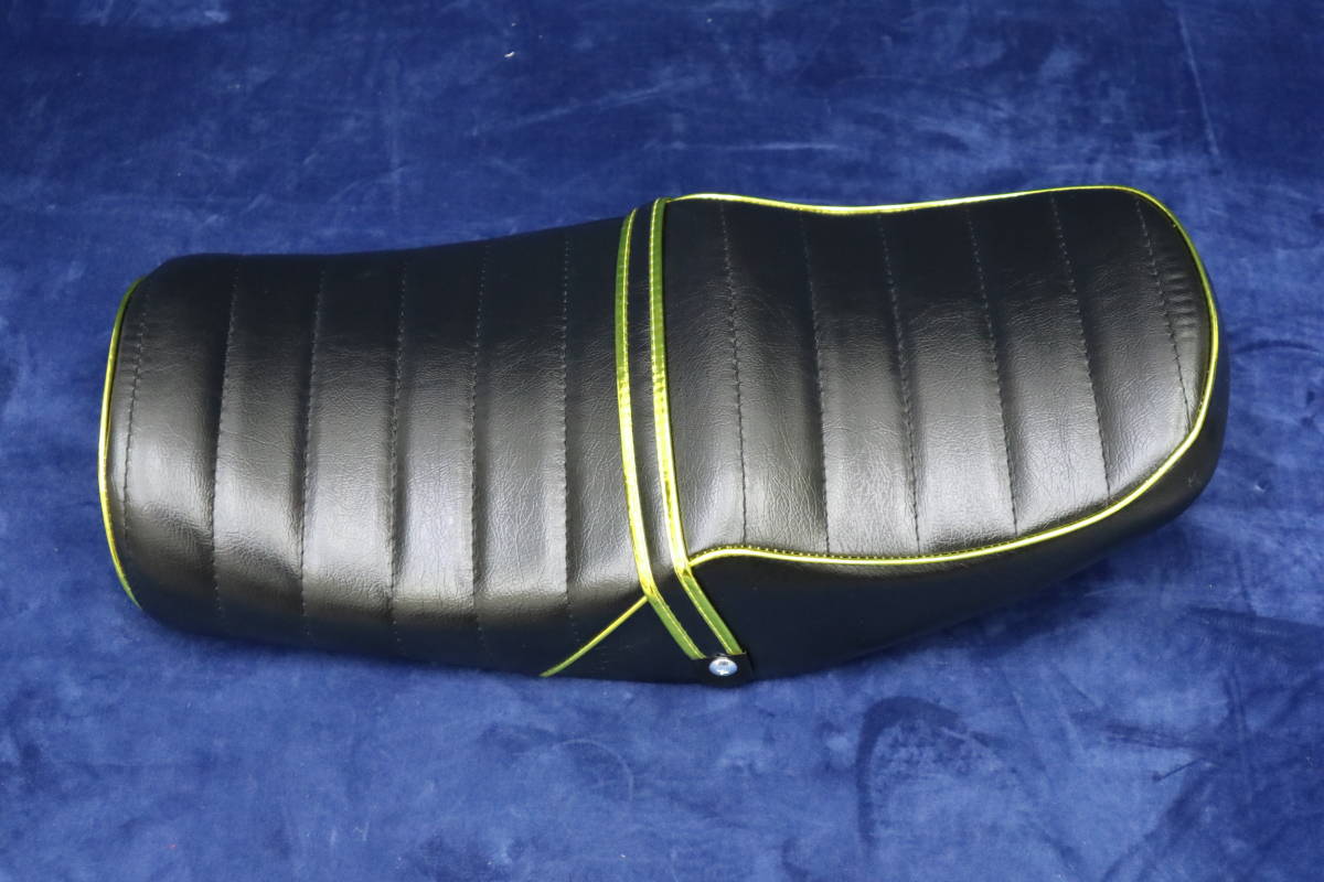> RZ250 タックロールシート 黒 金 皮 /ゴールドRZ350あんこ抜き 完成品 4L3 4U0 段シート 変形 タンデム ベルト 金具 旧車 外装