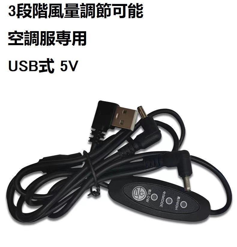 - 空調ケーブル ファン接続 空調服ファンケーブル 1点 USB式 5V/7.4V対応 3段階風量調節可能 空調服専用 汎用性 互換用 差し替え