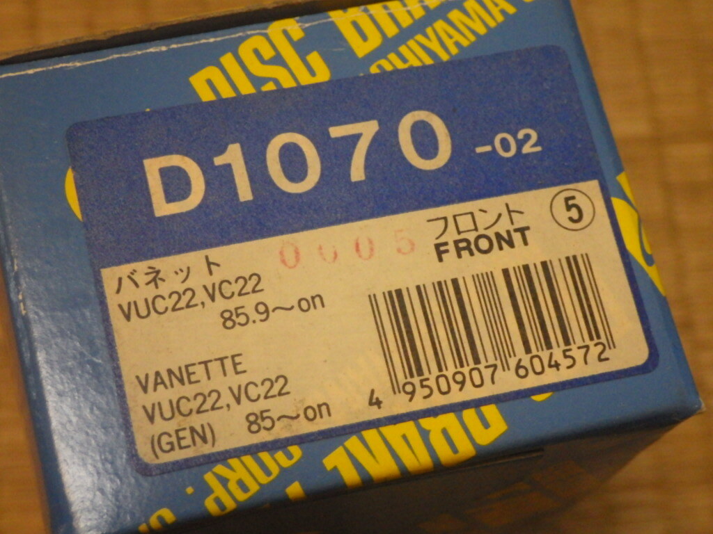 - 『バネット VUC22、VC22 フロントブレーキバッド D1070-02 エムケーカシヤマ』未使用品 日産