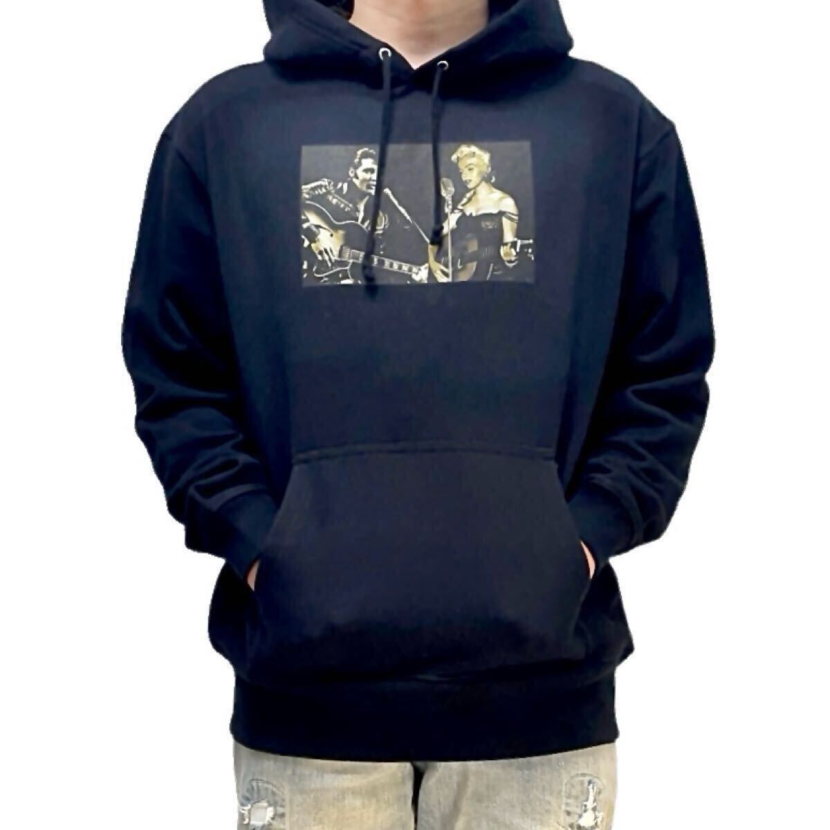 - 新品 エルヴィスプレスリー マリリンモンロー ギター セッション 夢の共演 50年代 アメリカ スター セピア パーカー ユニセックス Mサイズ