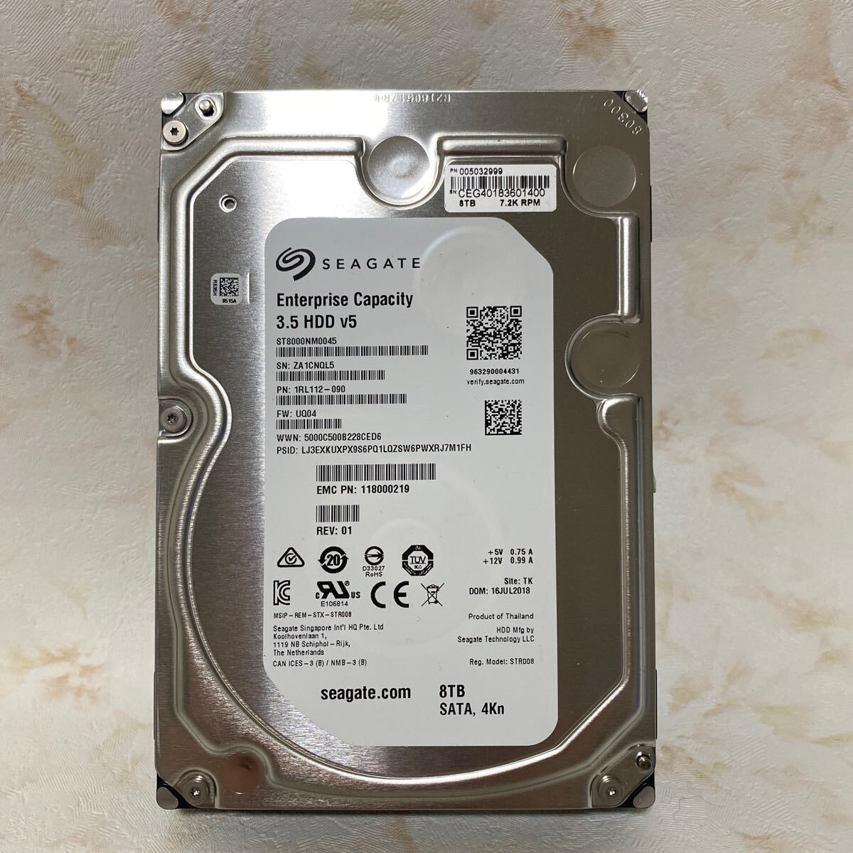 - As【55】SEAGATE Enterprise Capacity HDD v5 SATA 3.5 HDD 8000GB(8TB) 使用時間:52460時間 起動回数:60回 中古動作品 Blancco消去