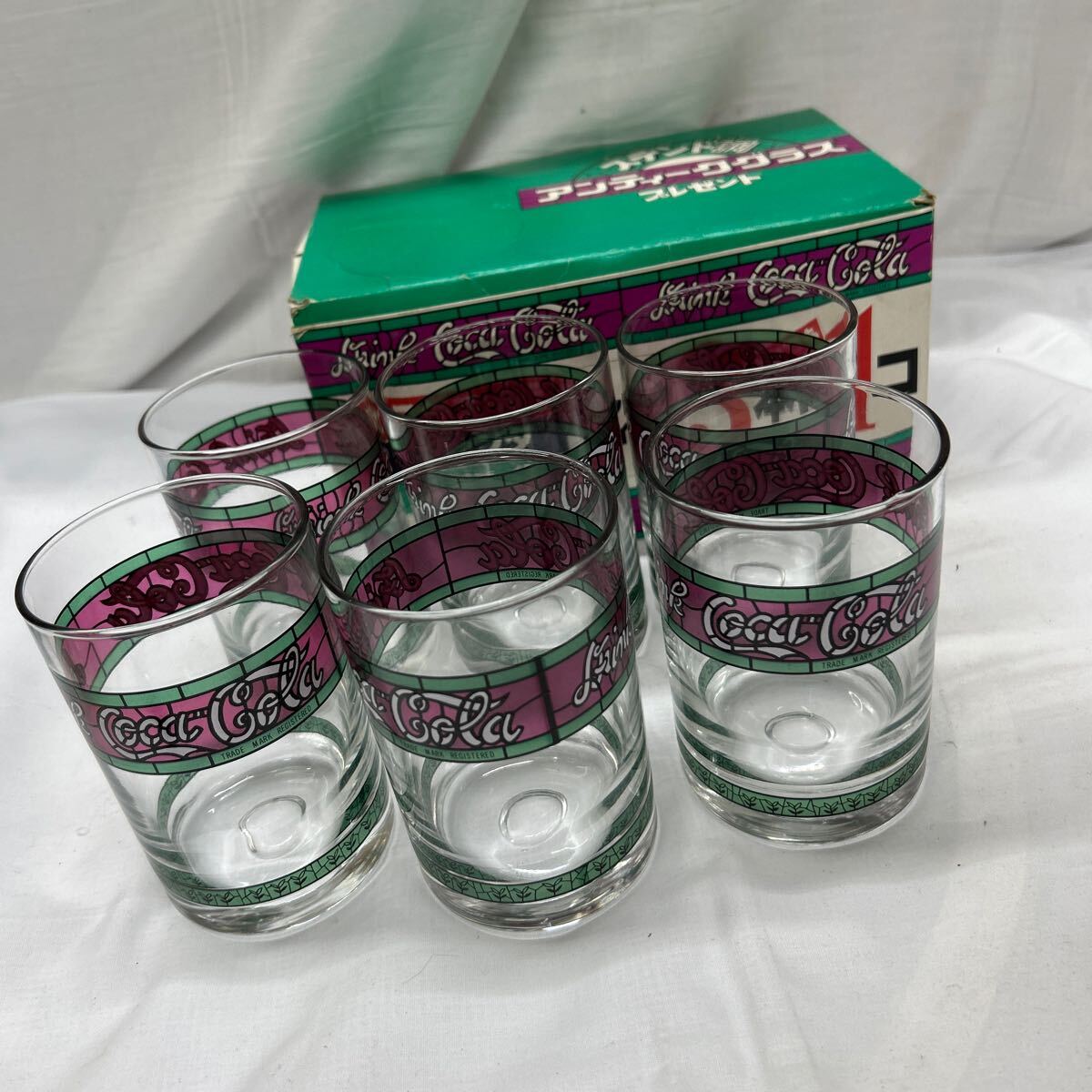 > 78★70203-⑬ ステンド調 アンティーク アンティークグラス グラス コカコーラ 6個 昭和レトロ レトロポップ 食器