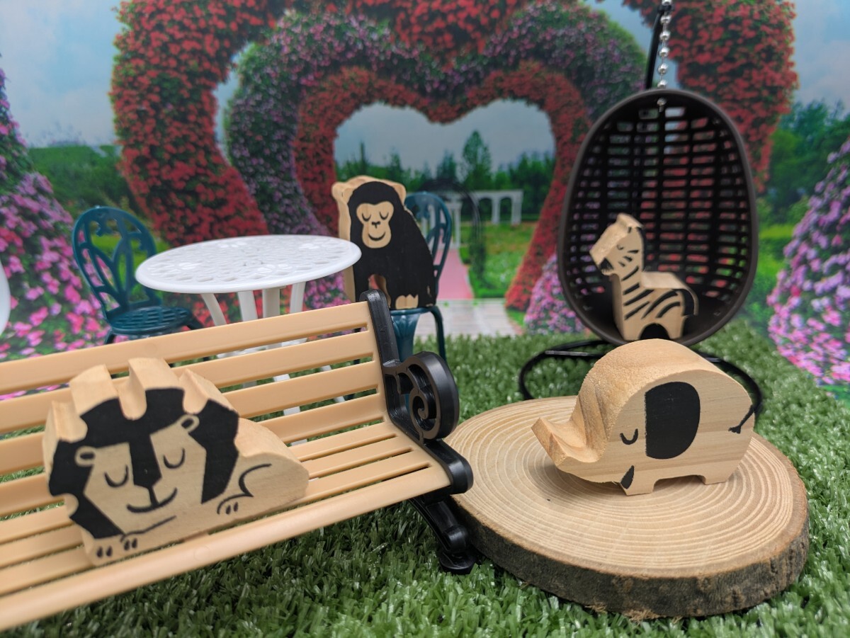 - 木のオブジェ 動物 4種セット ゾウ ゴリラ ライオン シマウマ 置物 インテリア