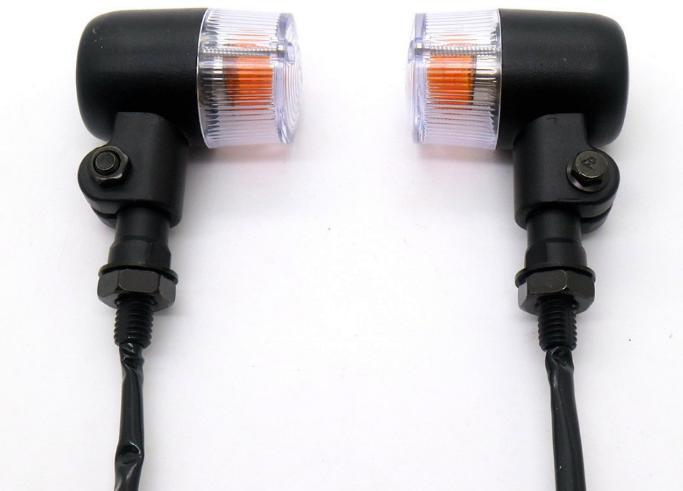 > 汎用ヨーロピアンウインカー アルミ合金 円筒型 ギボシ カフェレーサー ブラックボディ クリアーレンズ 4個セット
