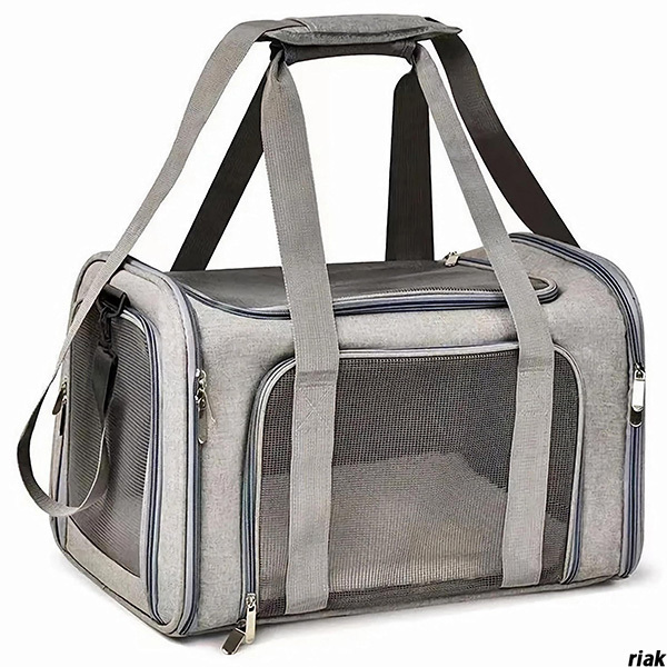 - 【グレーのシンプルでおしゃれなデザインで折りたたみ式でコンパクトに収納可能】 ペットキャリー 猫・小型犬 ドライブ 通気性