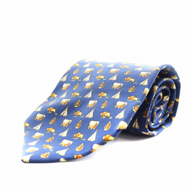 - サルヴァトーレフェラガモ Salvatore Ferragamo ワイドタイ ネクタイ 総柄 シルク 絹 紺 ネイビー /AN7 ■OH メンズ