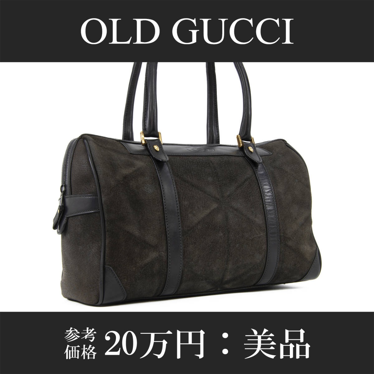> 本物 送料無料 オールドグッチ ハンドバッグ ミニボストンバッグ メンズ レディース 黒 ブラック グレー 珍しい GGロゴ 本革 バック A819