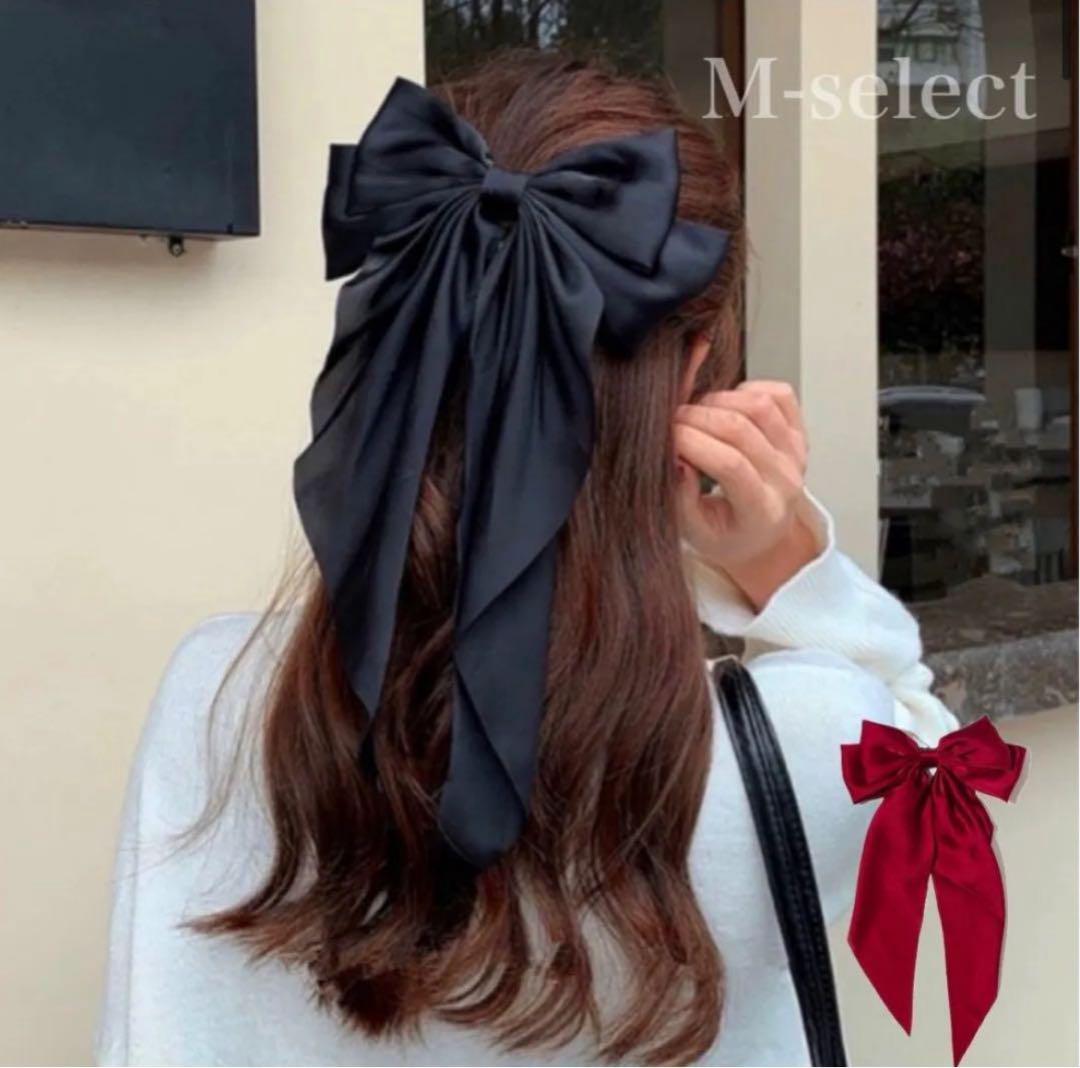 - ビッグリボン バレッタ 韓国 ヘアアクセサリー 髪飾りブラック ロリータ