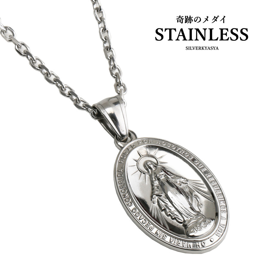 > (40cm) ステンレス 奇跡のメダイ ネックレス メンズ ペンダント 聖母 マリアネックレス 聖母マリア メンズ レディース