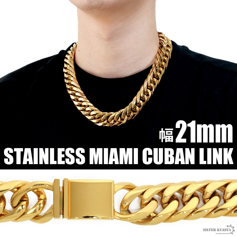 - (60cm) 幅21mm ステンレス 6面カット 極太 ダブル喜平ネックレス ステンレス ゴールド 金 差し込み式