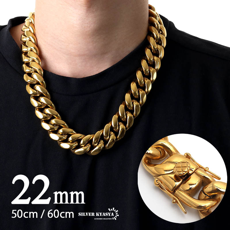 - (50cm) 幅22mm ステンレス 喜平チェーンネックレス 18k GP gold ゴールド 極太 太いチェーン系 メンズ