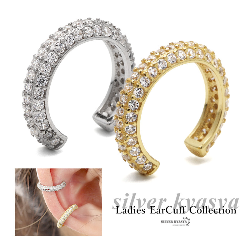 - (ゴールド) イヤーカフ イヤリング キラキラ イヤカフ シルバー925 18KGP 18金 CZ ストーン 片耳用