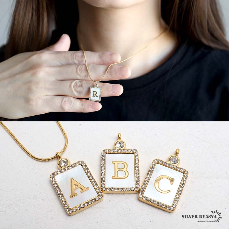 > (Y、45cm) イニシャルネックレス ストーン ゴールド スクエア ステンレス 18KGP スネークチェーン 金属アレルギー対応