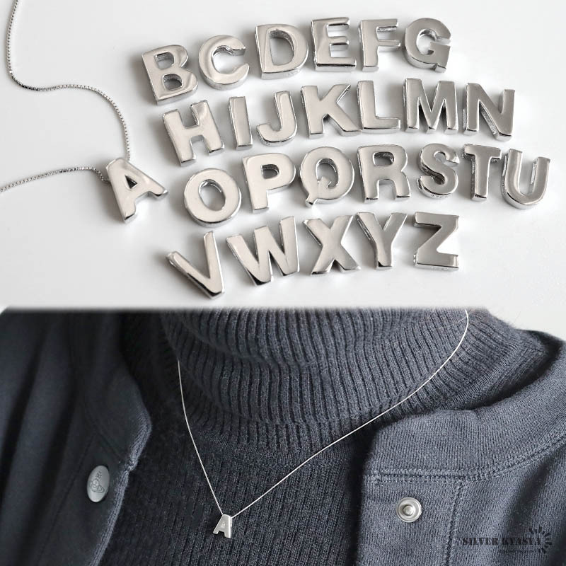 - (G) イニシャルネックレス アルファベットネックレス ペンダント シルバー925 極細 スネークチェーン 金属アレルギー対応