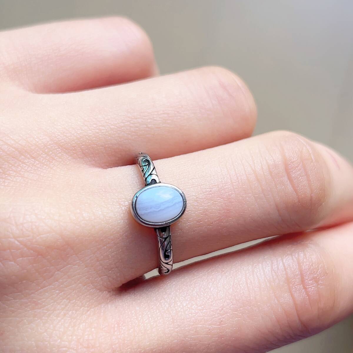 - ◇ブルーレースアゲート(空色縞瑪瑙 )◇指輪◇リング◇フリーサイズ◇天然石◇パワーストーン◇巾着袋付◇プレゼントにも 035R251