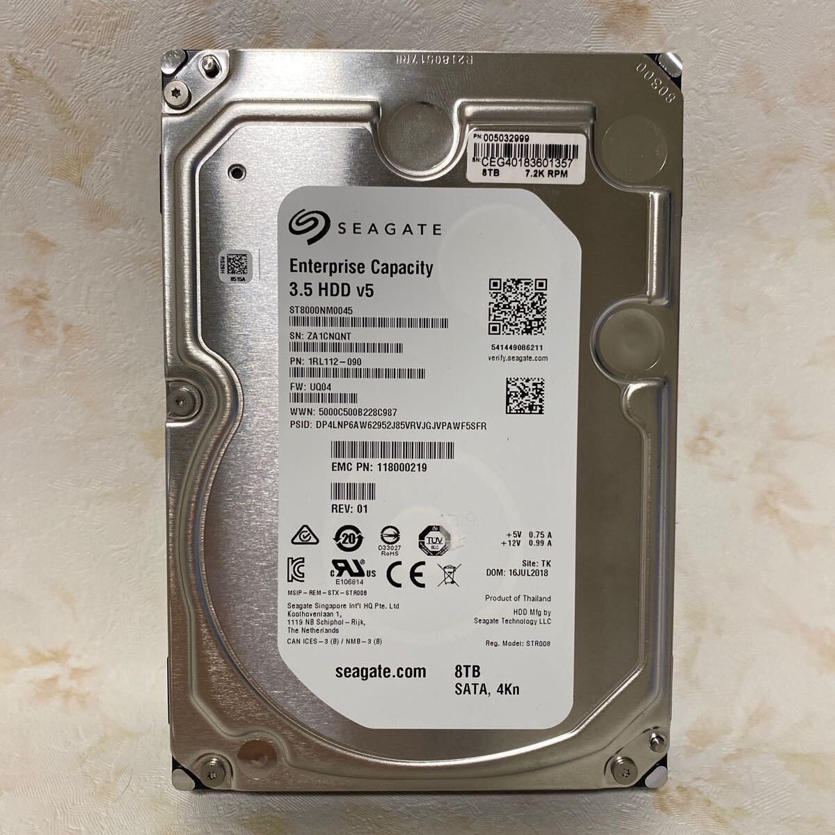 - As【92】SEAGATE Enterprise Capacity HDD v5 SATA 3.5 HDD 8000GB(8TB) 使用時間:51556時間 起動回数:64回 中古動作品 Blancco消去
