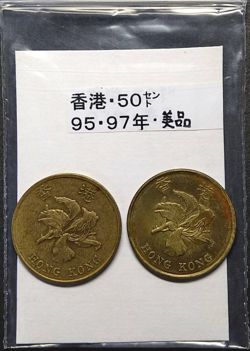 - 香港・50セント硬貨・1995年・1997年(2枚)【中古】