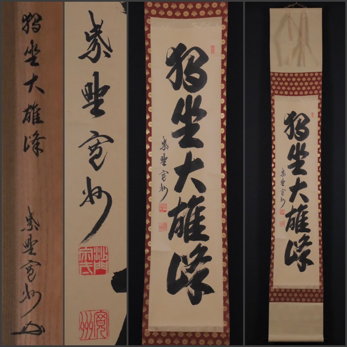 > 【模写】吉】11916 長谷川寛州 書「独座大雄峰」 共箱 臨済宗 大徳寺 三玄院 住職 仏教 茶掛け 茶道具 禅語 掛軸 掛け軸 骨董品