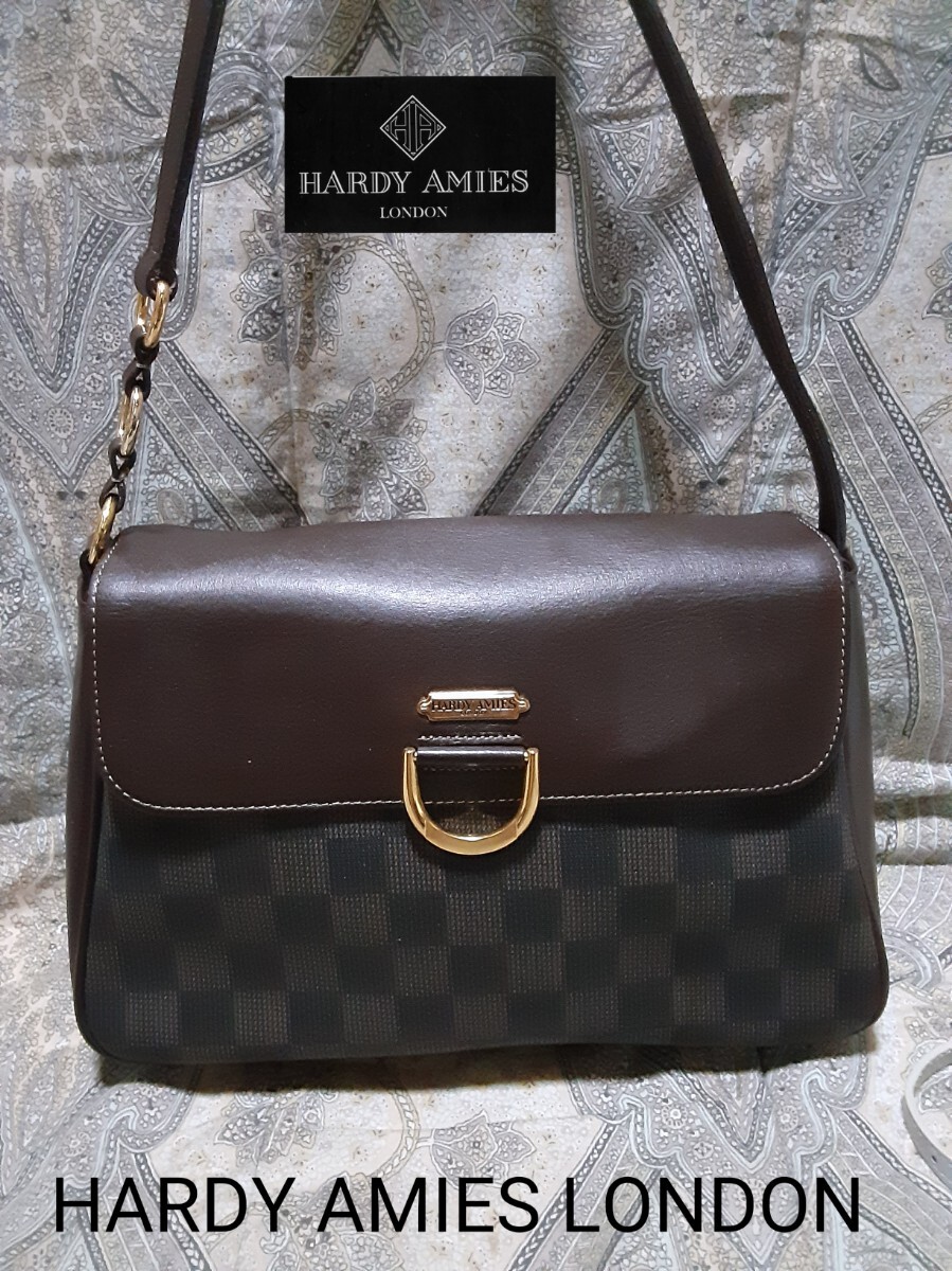 - ハーディエイミス ロンドン HARDY AMIES LONDON 本革コンビ/チェックハンドバッグ
