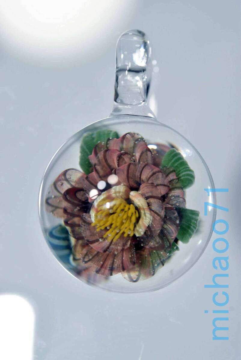 > 花 3D FLOWER ガラスのペンダントトップ (12080-P21)創作1点物 フラワー グラスペンダント ガラスの中に咲いた花