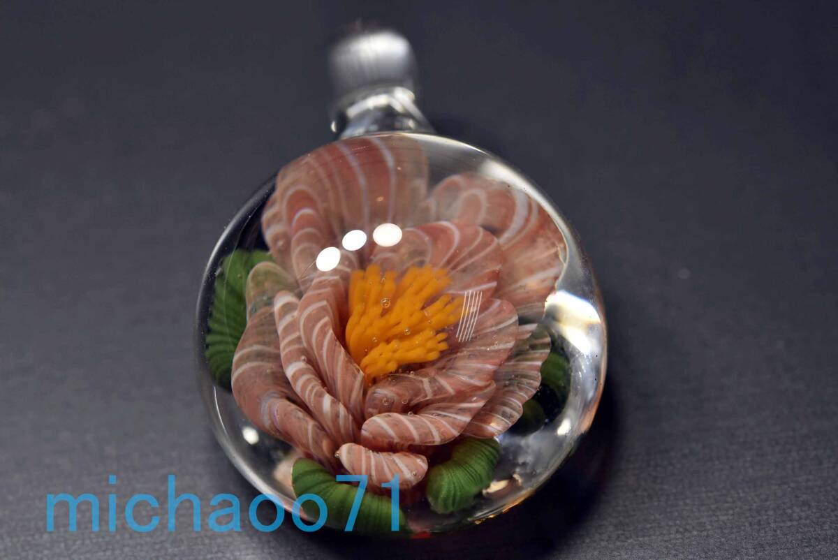 > フラワー グラスペンダント ガラスの中に咲いた花 ( 12082-p21)立体花 FLOWER ガラスのペンダントトップ 透き通ったガラスの中に作咲く花