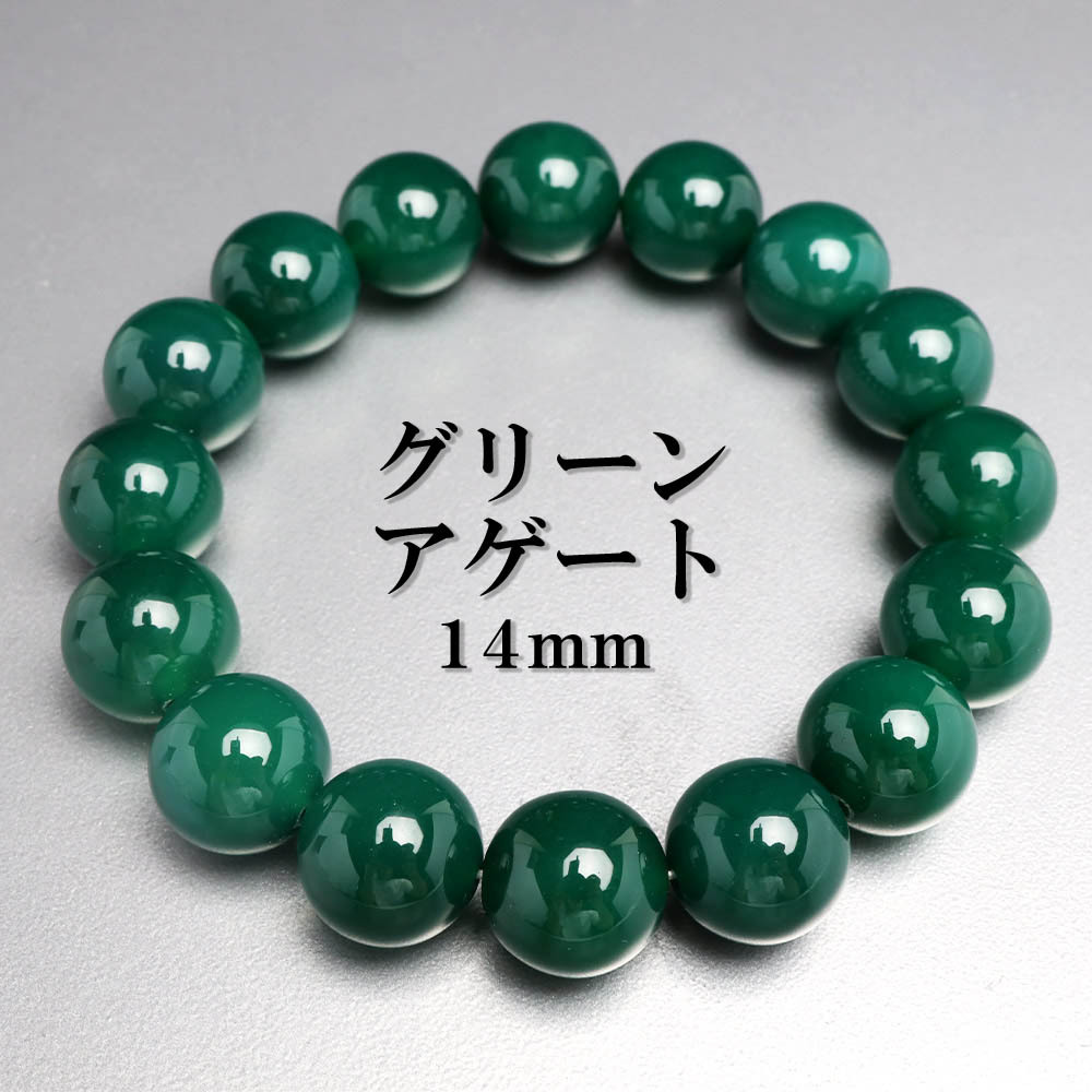 > (Mサイズ) 天然石ブレスレット パワーストーンブレスレット グリーンアゲート 14mm 天然 メノウ メンズ 男性