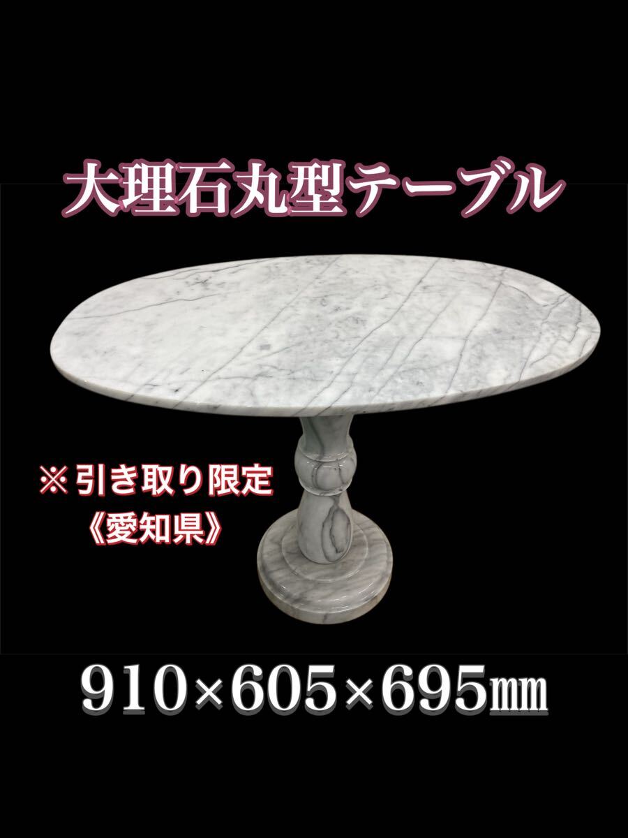 - 堀(引き取り限定/愛知県) 大理石 丸テーブル 910×605×695 楕円形 アンティーク 飾り台 花台 サイドテーブル テーブル 白 グレー 250207