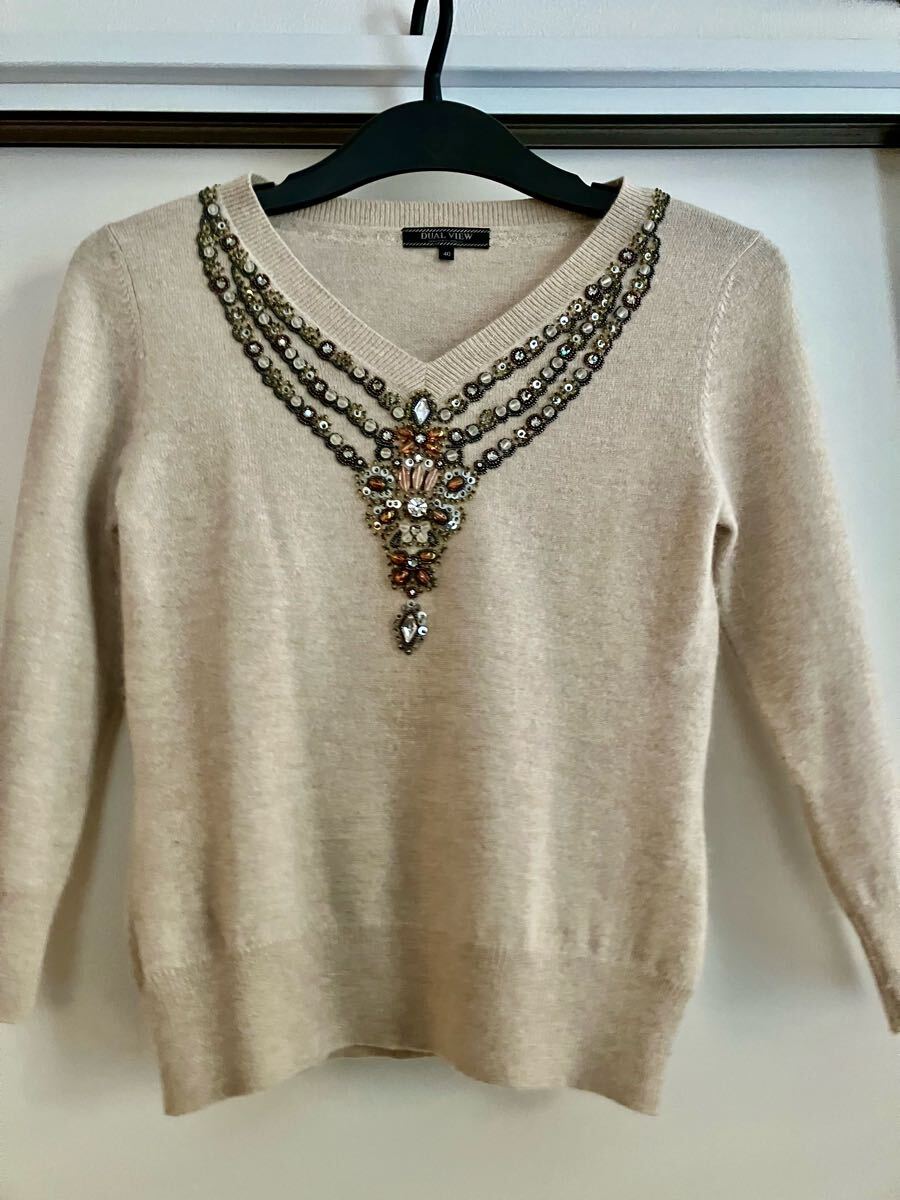 - Dual View アンゴラ セーター ビジュー装飾 七分袖ニット