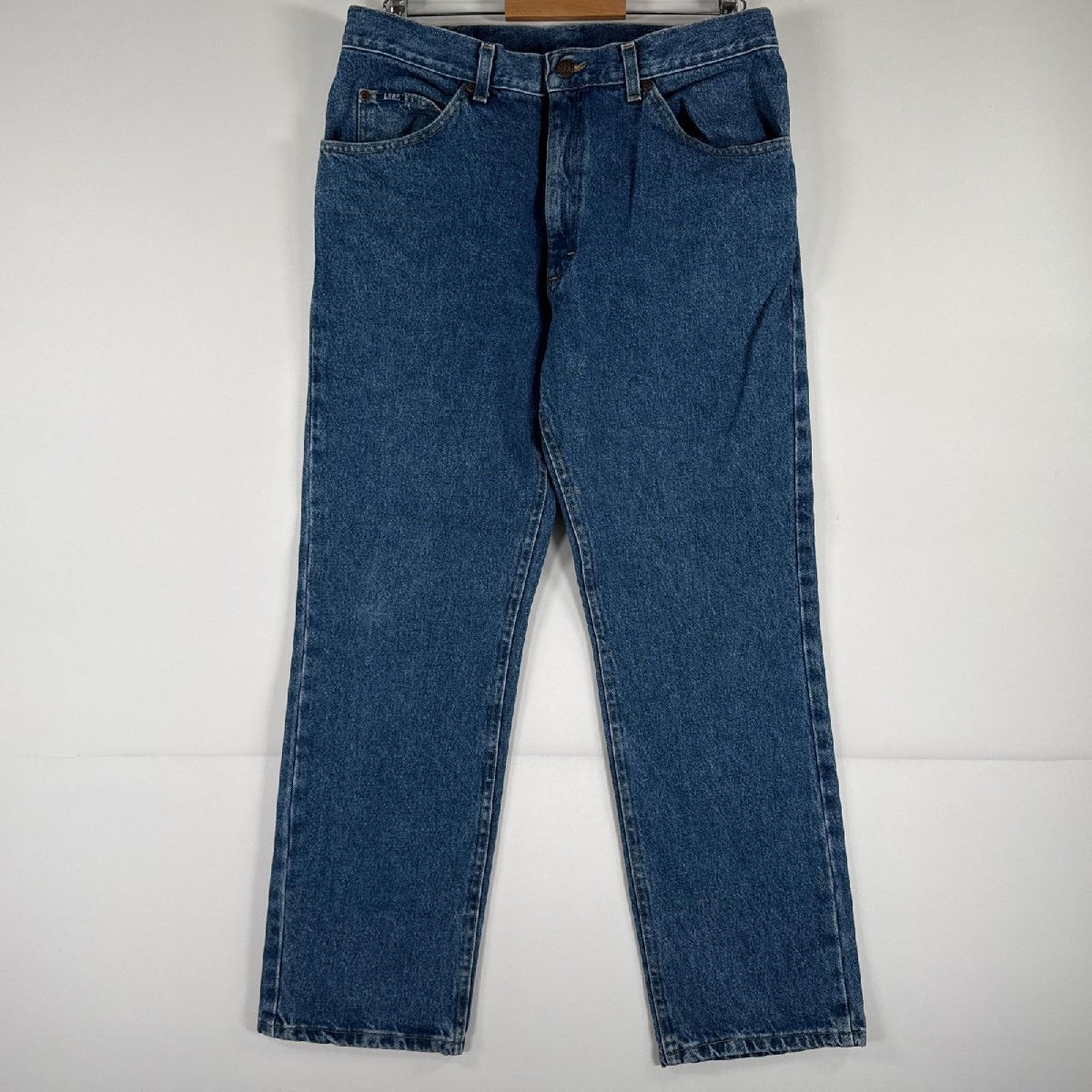 > 古着 リー デニムパンツ Lee ジーパン ジップフライ テーパード 5ポケット レザーパッチ 大きいサイズ w36 L30 ブルー メンズ