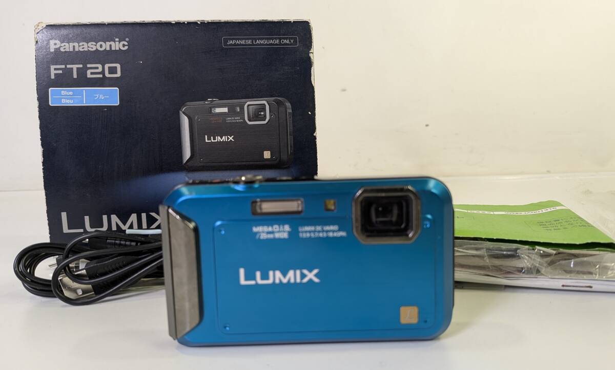 - □Panasonic LUMIX DMC-FT20-A パナソニック ルミックス コーラルブルー デジタルカメラ 箱付き 充電器なし