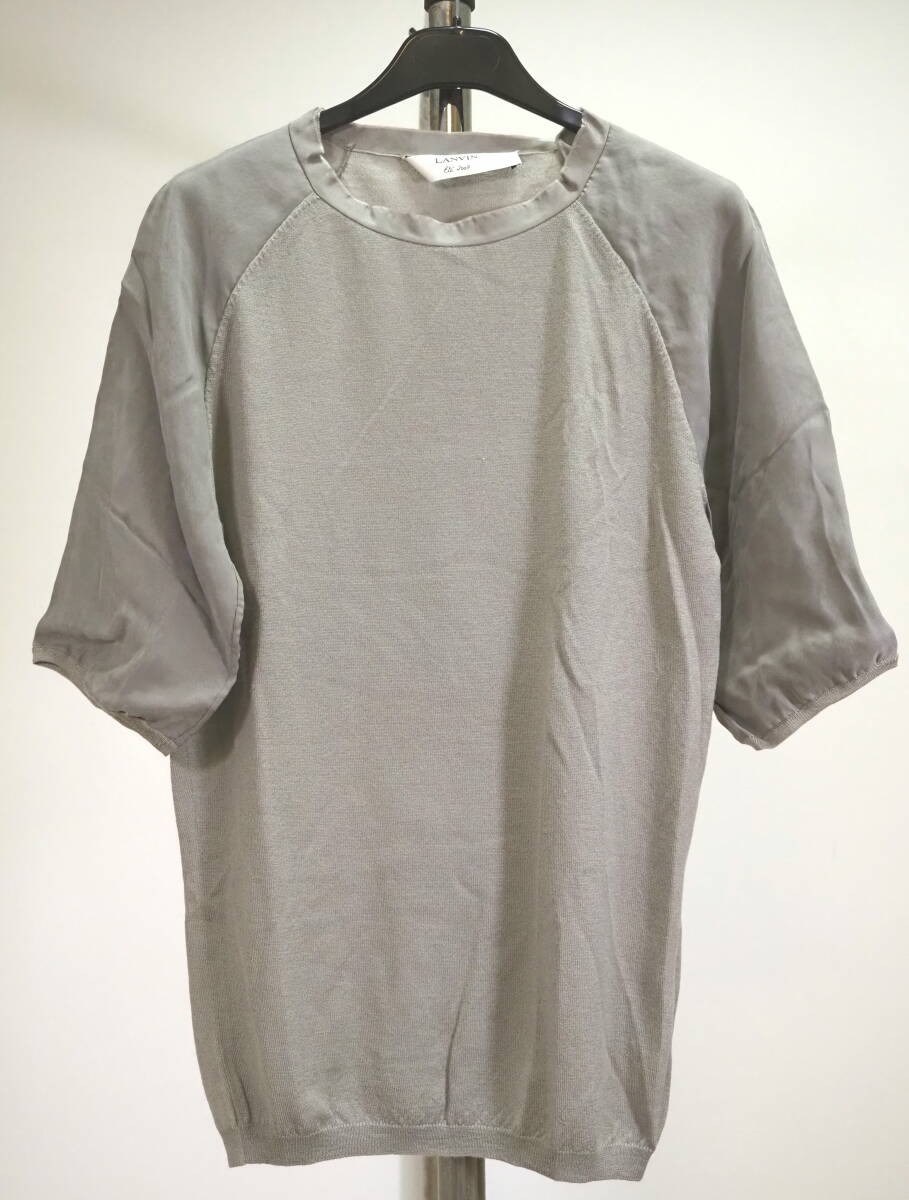 - LANVIN ランバン 09SS肩ボタン5分袖切り替えニットXS灰 Italy製 アルベール・エルバス