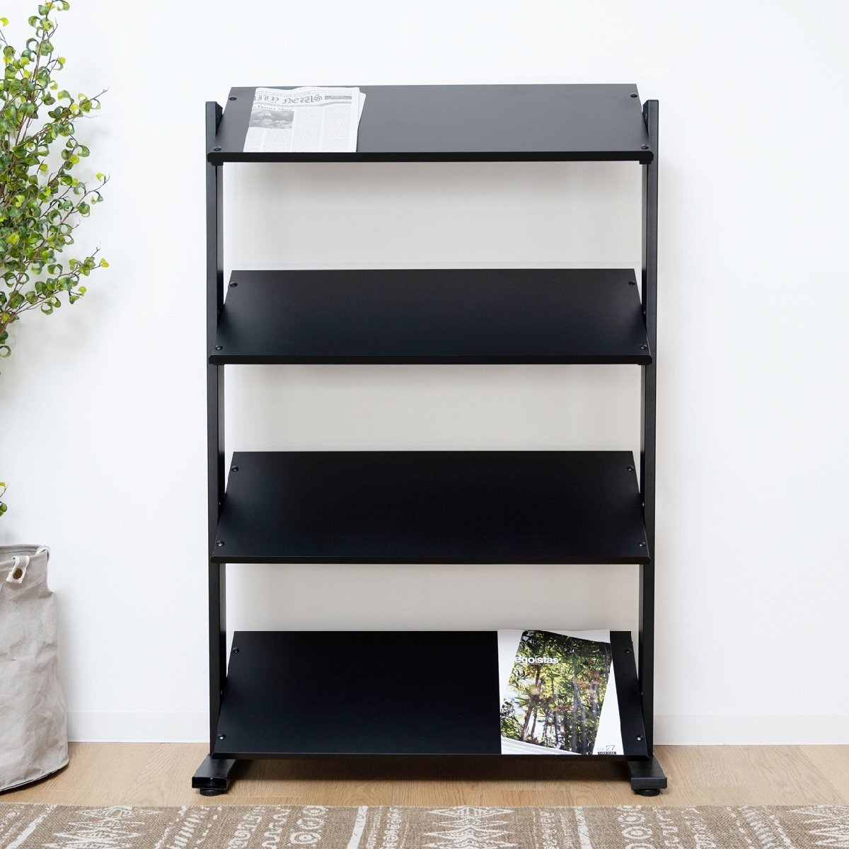 - 4段 シェルフ ラック 棚 収納棚 オープンラック 本棚 ディスプレイ 什器 スチール シンプル 黒 2WAYラック4D DIS-74BK