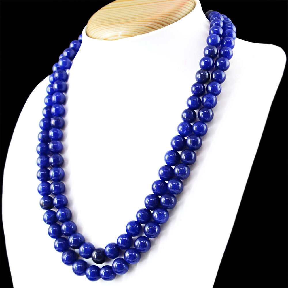 - サファイア ネックレス 手元に有ります。568.50カラット サファイア鉱山から ラウンドシェイプビーズ 2ストランドネックレス