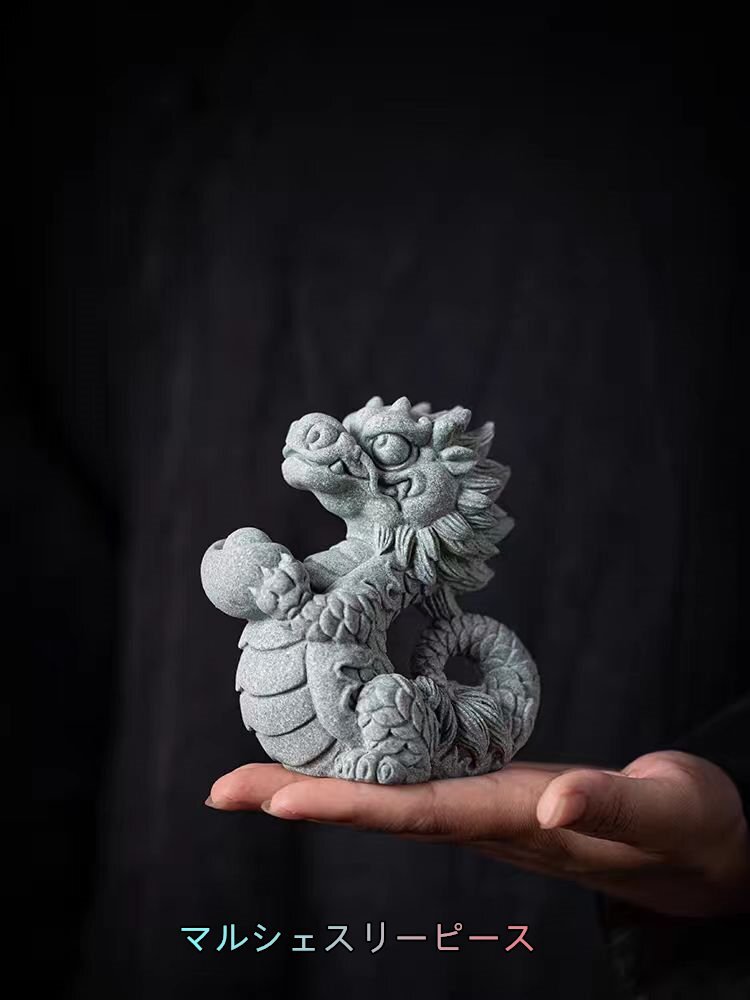 - 神龍送宝 龍 オブジェ 置物 石像 竜 彫刻 ドラゴン石彫 庭石 造園 庭園 風水グッズ 風水置物 魔除け 金運祈願 財運 開運 水槽飾り