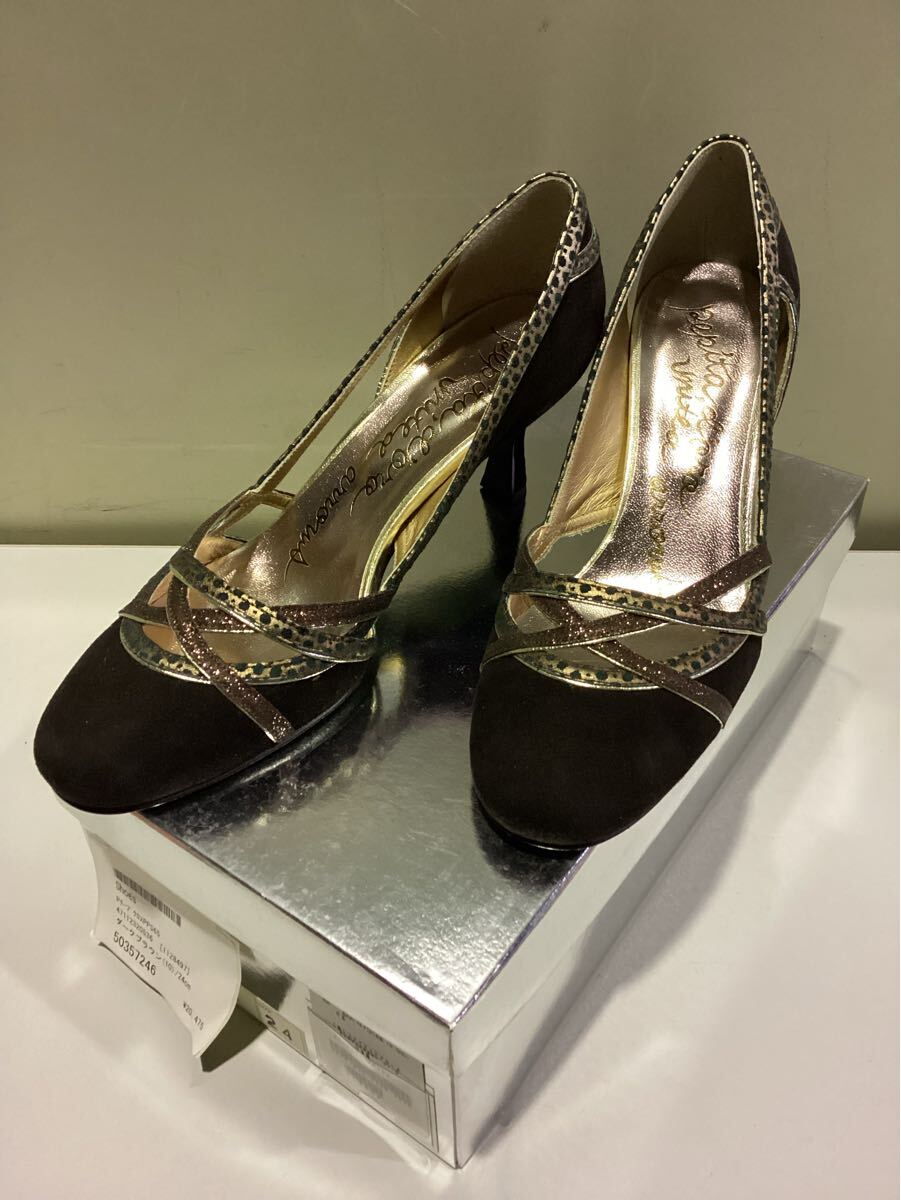 - 668【未使用】 エナメル ダークブラウン 羊革 パンプス ヒール 24.0センチ