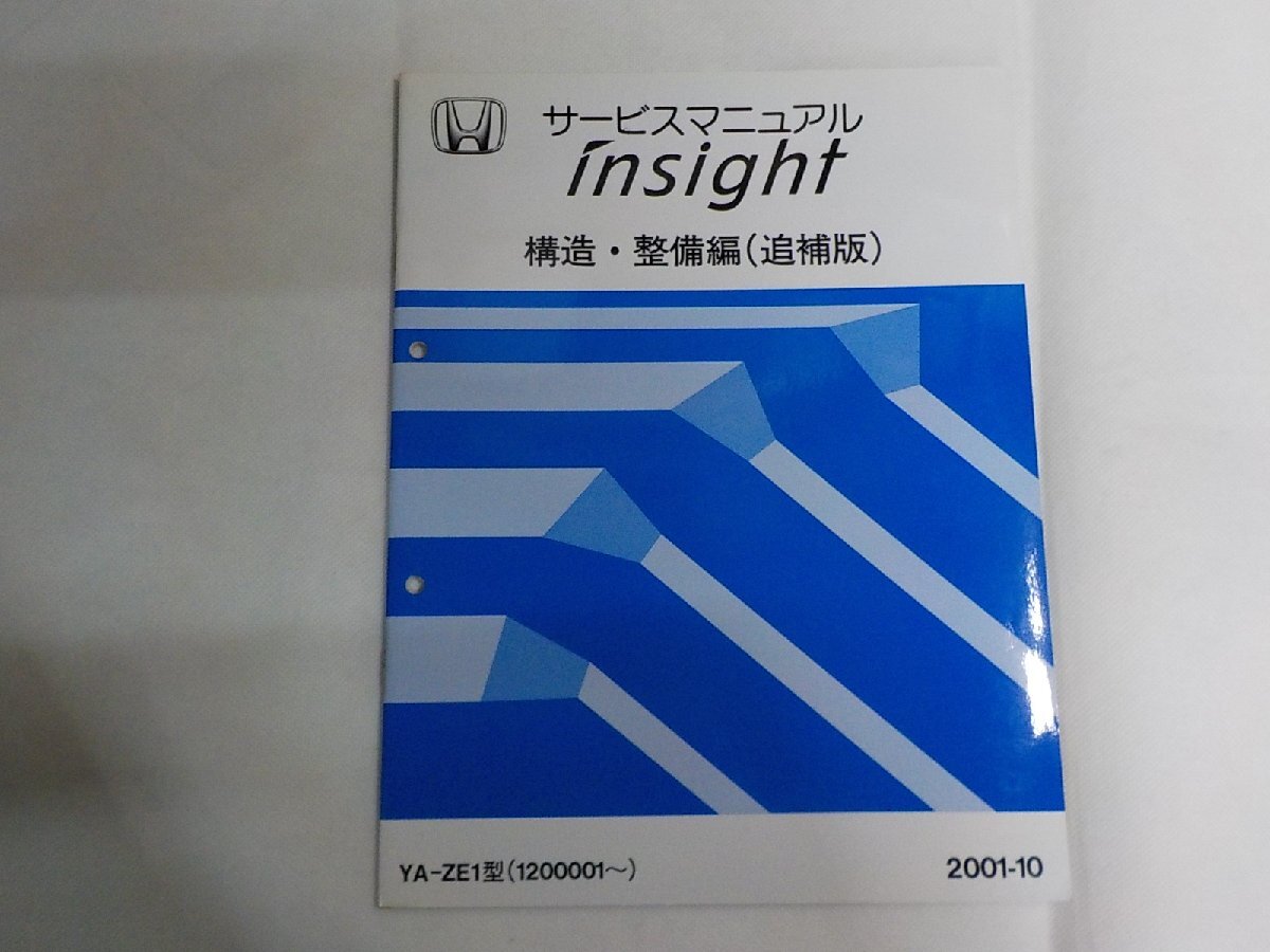 - N3527◆HONDA ホンダ サービスマニュアル insight 構造・整備編 (追補版) YA-ZE1型 (1200001~) 2001-10 平成13年10月(ク)