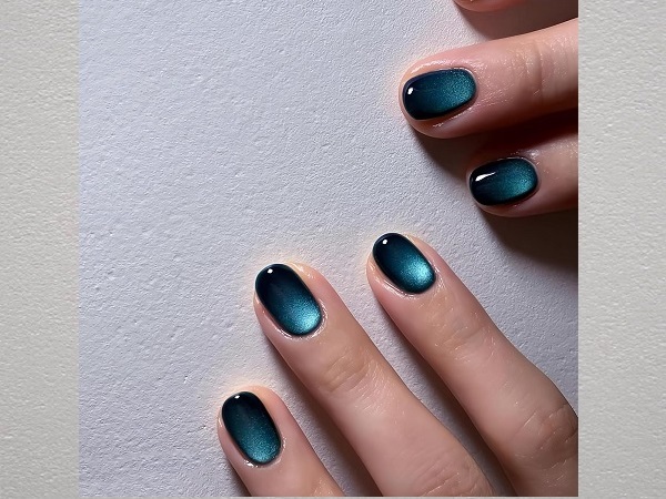 - THCEVRLA ネイルチップ 青 24枚入 新品 手作り ネイルチップ ショートク MINI キャッツアイゴム マグネット ツールキット 付属 効果 長持ち