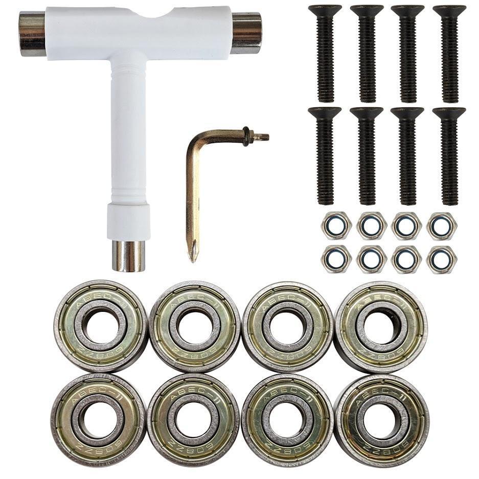 - 送料無料 スケートボード 工具 ベアリング ネジ ナット ABEC11 Tツール Tレンチ ビスセット 6角ヘッド 組立 修理 スケボー セット ホワイト