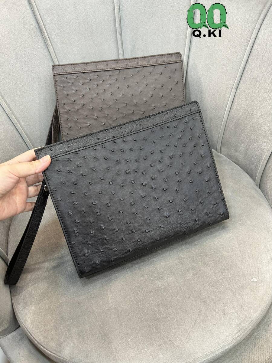- 特注品 オーストリッチレザー 本物 ダチョウ革 セカンドバッグ メンズ レザー クラッチバック ビジネス鞄 黒/茶色