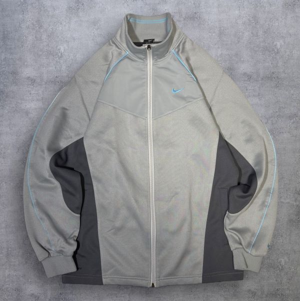 > ★NIKE★グレーバイカラー★ジャージ上 sizeM グレー系 ロゴ刺繍 ラグランスリーブ ナイキ スポーツ 古着 クリーニング プレス済み 1956