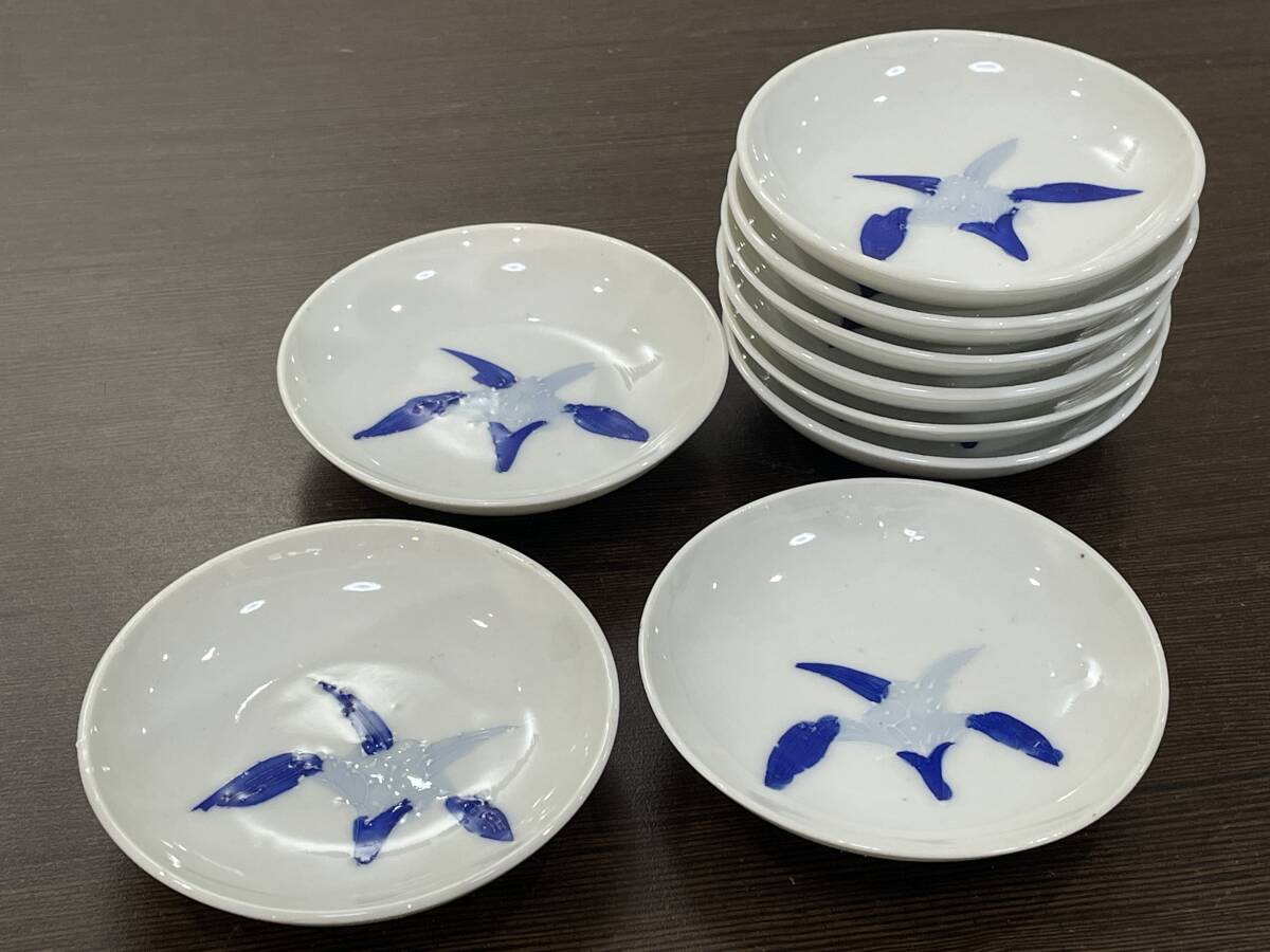 > ★【骨董品 アンティーク レトロ品 和食器】陶印:瀬614 手書き 花柄 小皿 9客セット★10cm