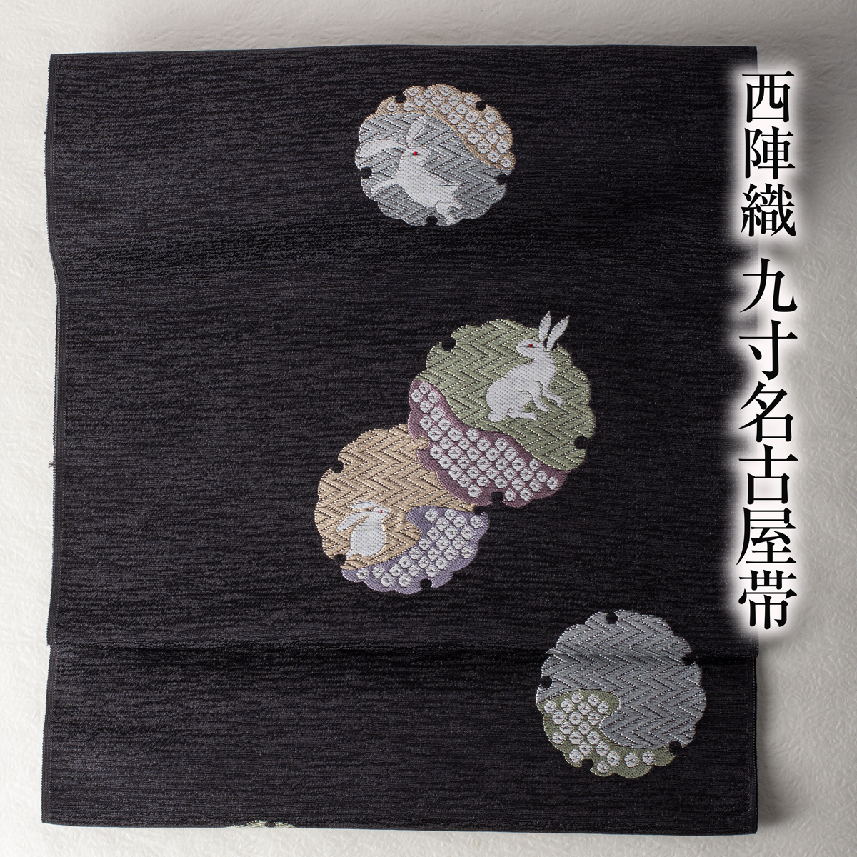 > 西陣織 九寸名古屋帯 京都イシハラ謹製 NO.3710 雪輪うさぎ 未仕立て 新品 袷 単衣
