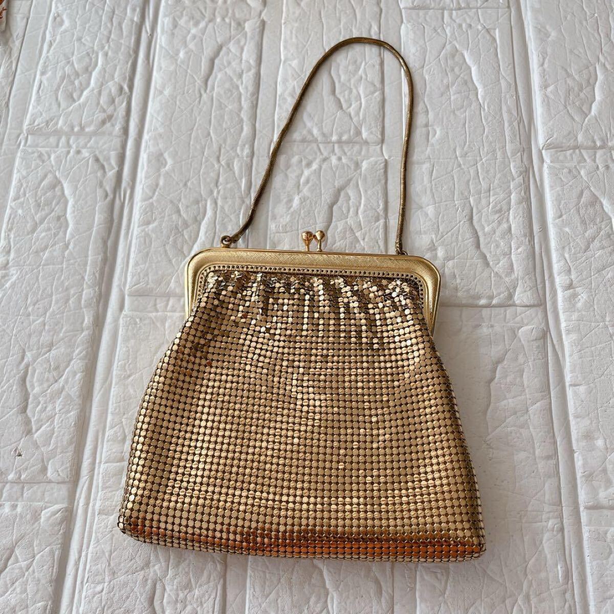 - ゴールド メタルメッシュ パーティーバッグ クラッチバッグ メタル巾着 がま口 昭和レトロ